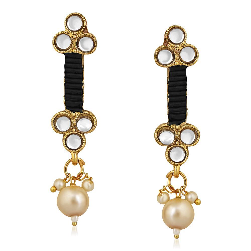 Mahi Traditional Floral Kundan & Black Beads Layered Choker Necklace Jewellery Set for Women (VNCJ100261BLK)