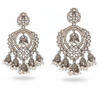 Js Fashion Heritage Oxidised Plated Kundan Stone And Pearl Jhumki Earrings